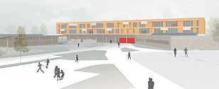von einander getrennt. Die Schulanlage ist weit in den